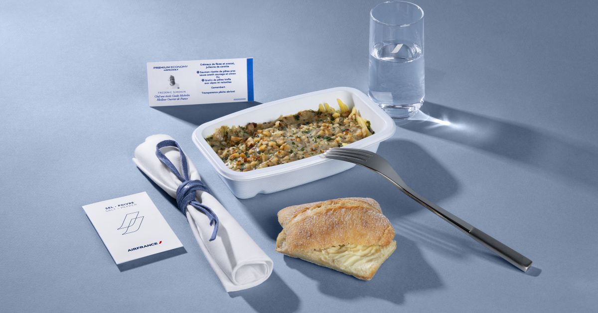 Air France serveert vanaf deze maand op vluchten van en naar de Verenigde Staten en Canada aan premium-passagiers gerechten van Michelin-sterrenchef Frédéric Simonin. De menu’s zijn ontwikkeld in samenwerking met cateraar Servair en worden regelmatig vernieuwd. Passagiers kunnen op de betreffende routes kiezen uit twee warme gerechten, waaronder altijd een vegetarische optie. Op het menu staan onder meer Sint-Jakobsschelpen met tapiocaparelsaus en aspergepasta, evenals een trofiepastaschotel met eekhoorntjesbrood en hazelnoten. Daarnaast omvat de service een aperitief, een voorgerecht en een dessert.